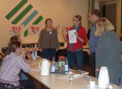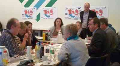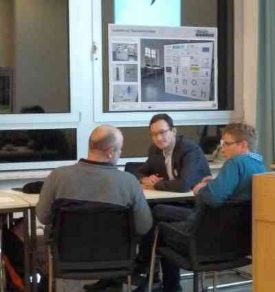 Der theoretische Teil des Treffens wurde durch Frau Kruczynski vom RBZ Eckener Schule in Flensburg eingeleitet. In ihrem Vortrag veranschaulichte sie anhand von Beispielen die Möglichkeiten, Themen oder Fragestellungen mit Bezug zu regionalen Betrieben in den Schulunterricht zu integ-rieren. Die Fragen „Weshalb sollte und wie kann mathematisch-naturwissenschaftlicher Unterricht durch Berufsinformationen ergänzt werden?“ diskutierte Frau Prof. Dr. Parchmann, Vizepräsidentin für Lehramt, Wissenstransfer und Weiterbildung der CAU Kiel mit Blick auf die Ziele und Vorgehensweisen des Projekts PANaMa. Projektkoordinatorin Dr. Birte Niebuhr stellte die teilnehmenden Schulen und Unternehmen sowie konkrete nächste Schritte des PANaMa-Projekts vor. Im Mittelpunkt standen dabei Informationen zu den Ausstel-lungsformaten, zum Urheberrecht sowie zu Kontaktaufnahme und Informationsfluss zwischen Schulen und Unternehmen. Abgeschlossen wurde der Tag mit der Vernetzung in Themengruppen (Erneuerbare Energien, Landwirtschaft/Ernährung, High-Tech-Materialien) sowie einem gemeinsamen Abendessen.