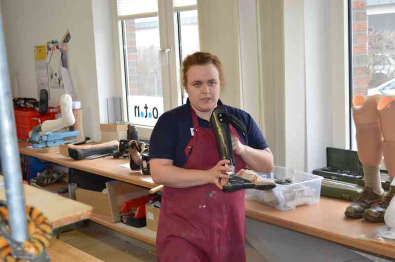 I marts var elever fra Alexander-Humboldt-Schule fra Neumünster på besøg i virksomheden o.t.n. (Orthopädietechnik Nord). Valgfagsholdet ”Anvendt naturvidenskab og teknik” (kort ”ANT”) fra 9. årgang fik et indblik i virksomhedens struktur, arbejdsområder og uddannelsesperspektiver af Reiner Wallus, som er leder af indkøbsafdelingen. Holdet var fascineret af ortopæditeknikkens muligheder.
