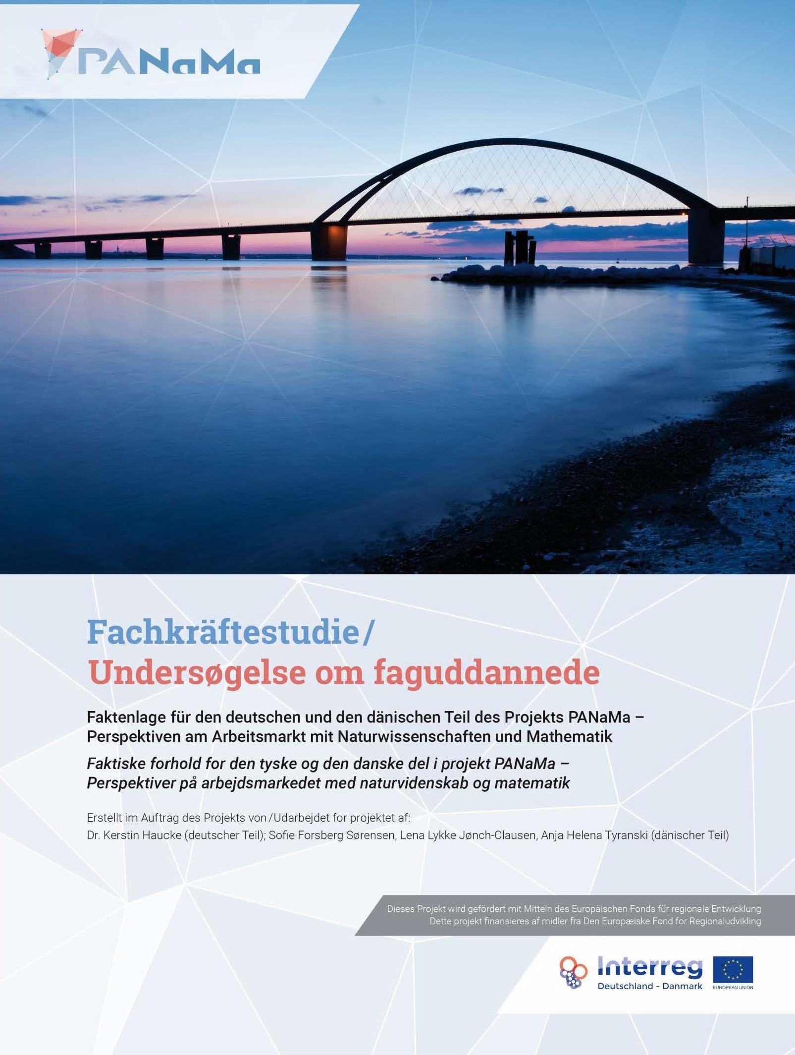 Die Idee für das PANaMa-Projekt entstand v.a. aus der Notwendigkeit dem prognostiziertem Fachkräftemangel in den Regionen Schleswig-Holstein und Süddänemark entgegenzuwirken. Hierzu sollten zukünftigen Schulabsolventen berufliche Perspektiven über den naturwissenschaftlichen-mathematischen Schulunterricht beiderseits der Grenze eröffnet werden. Als Ausgangspunkt für die Konzepte des Projekts wurde 2016/17 eine eigene Studie erarbeitet, die die Prognosen zu den Defiziten an Fachkräften auf dem Arbeitsmarkt in den Regionen zusammenführt. Diese Studie von Dr. Kerstin Haucke, Sofie Forsberg Sørensen, Lena Lykke Jønch-Clausen und Anja Helena Tyranski steht Ihnen hier zum Download zur Verfügung.